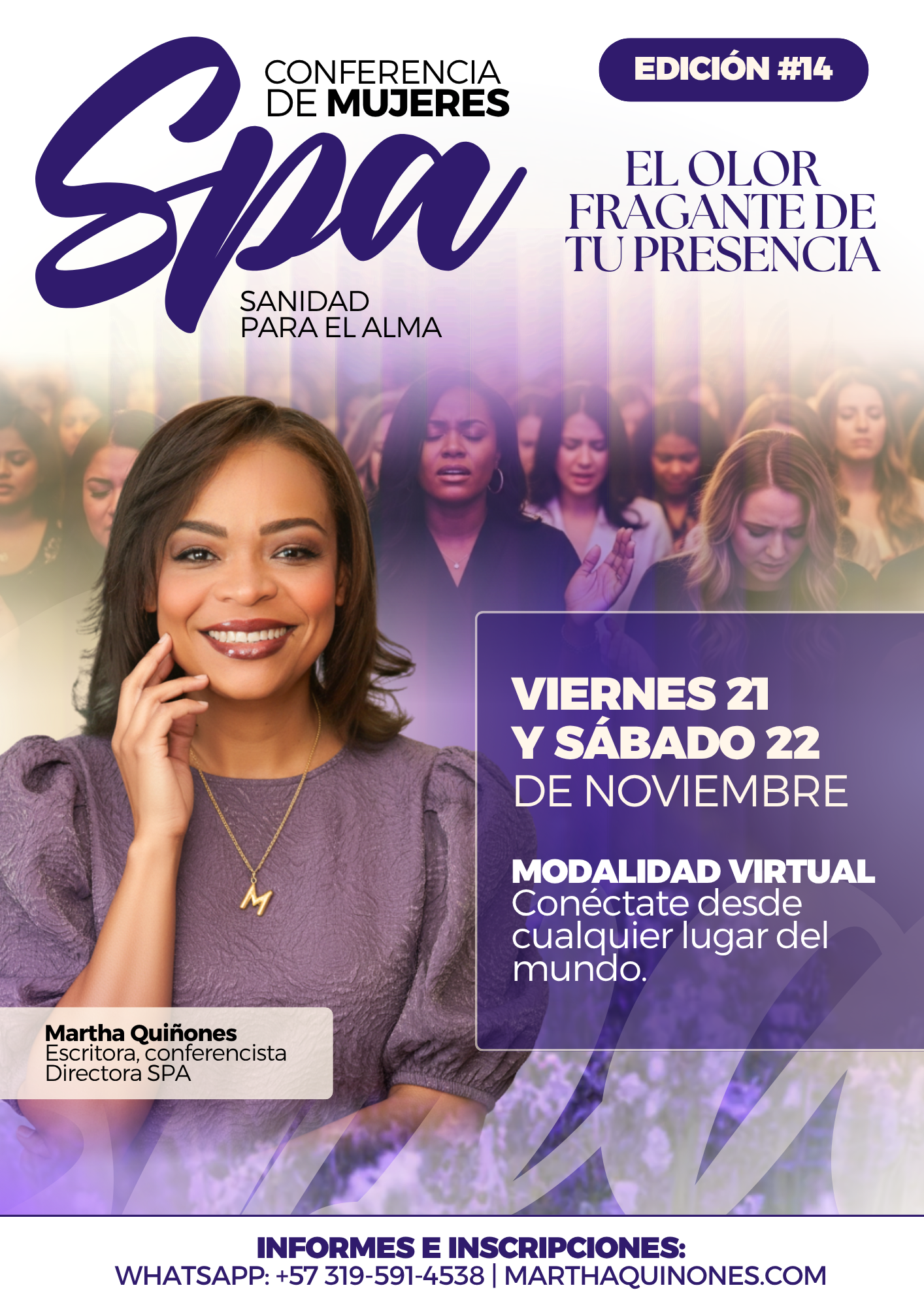 Directora de la Conferencia Internacional SPA "Sanidad para el Alma" la cual se ha desarrollado en países como: Colombia, República Dominicana, México, Estados Unidos, con programas de liderazgo y formacion integral de la mujer.